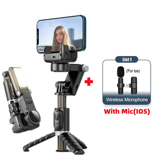 2023 New Bluetooth Wireless Gimbal Stabilizer Selfie Stick 360 Degree Smart Face Tracking Live Recording with Fill Light